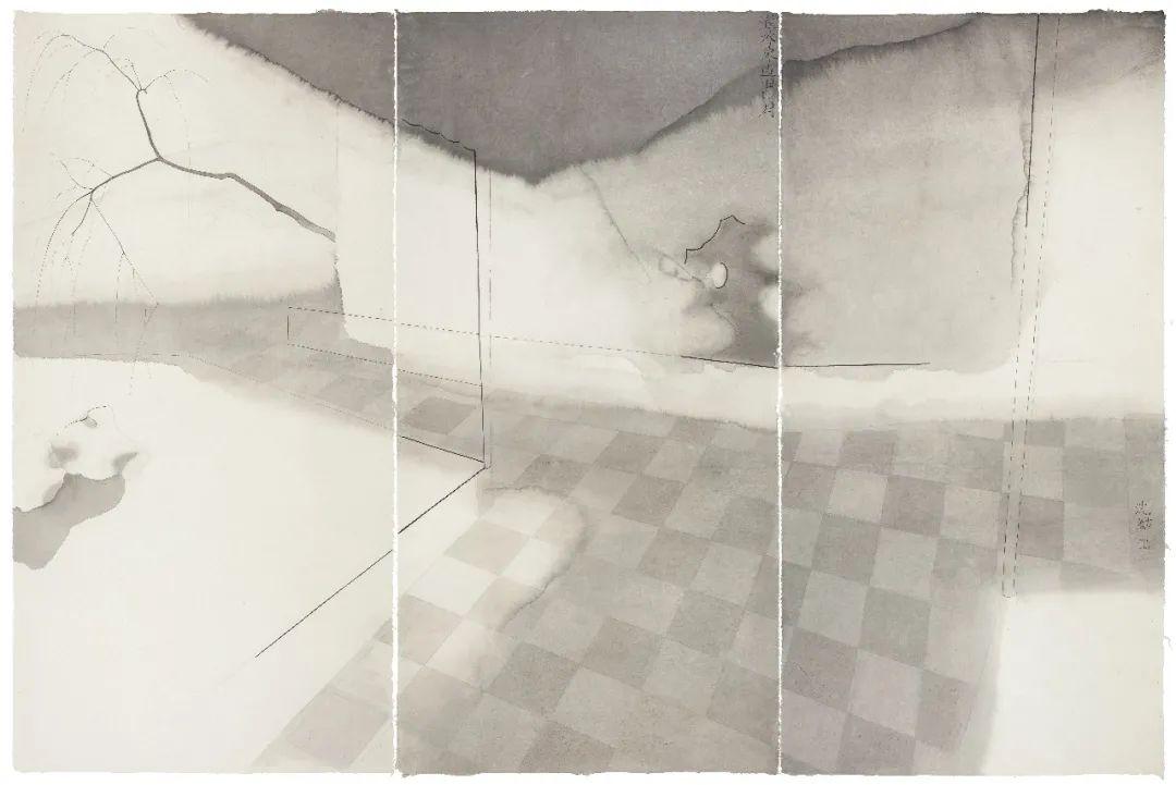 沈勤,淮水东边旧时月,137x208.5cm(137.5x69.5cmx3),纸本水墨,2021