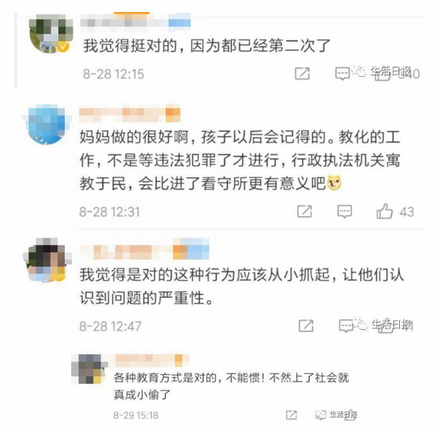 无独有偶,近日,广东一位男孩偷拿家里的钱也被妈妈扭送到派出所。