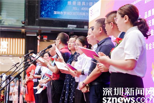 随后,水贝万山珠宝文化产业园总经理陈晔平、金展珠宝广场招商运营总监王琳琳、特力珠宝大厦运营总经理崔战红、水贝金座运营中心总监赵丽、水贝国际中心运营总监廖灿荣等交易中心代表,以及周六福珠宝总经理谢明育、周大生珠宝行政副总经理周洪生、金大福珠宝副总裁丘航等珠宝品牌代表一同上台宣誓,表达展示特色、推广品牌、促进消费、助推增长的决心。