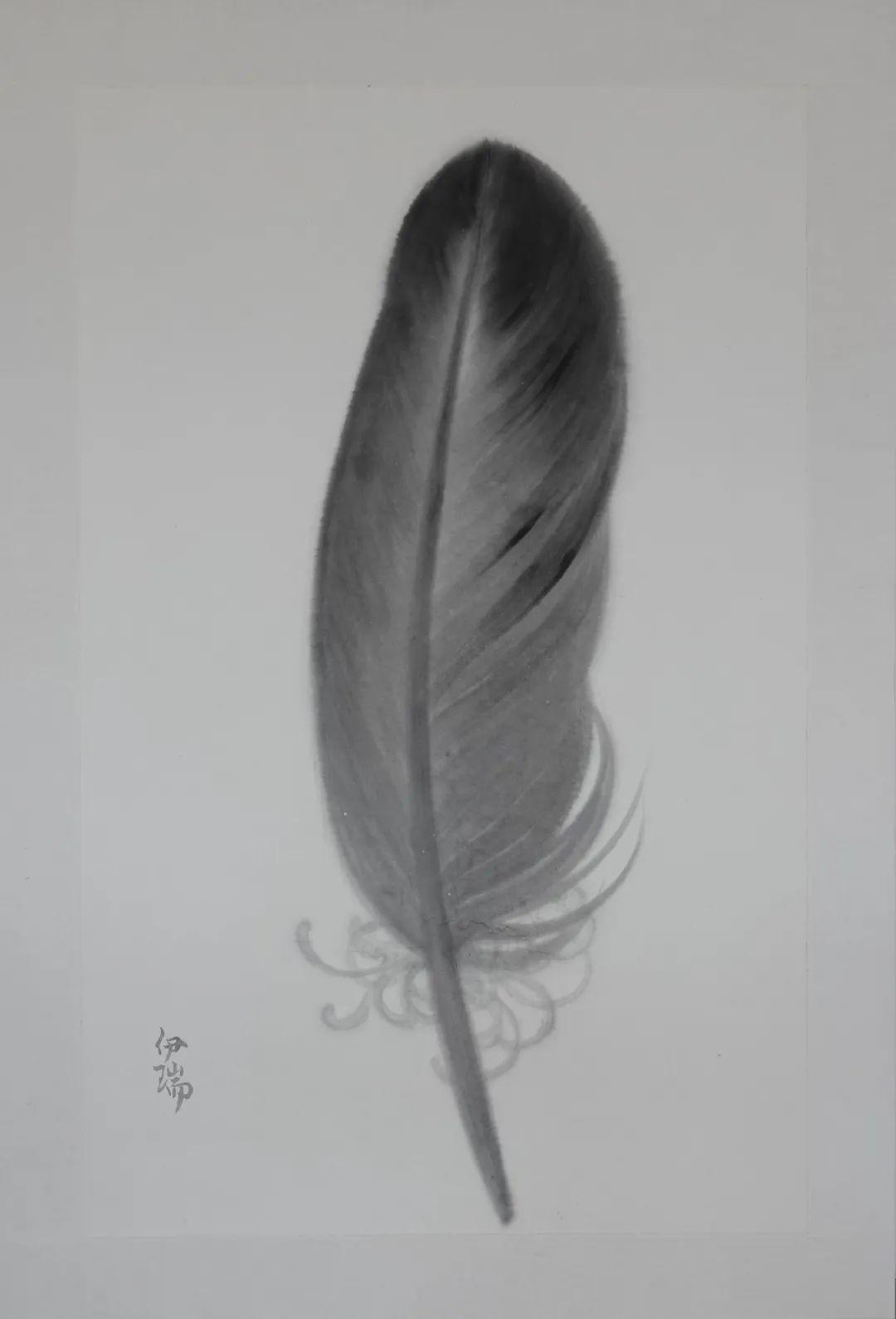 伊瑞,羽毛系列,宣纸水墨,138x93cm,2015