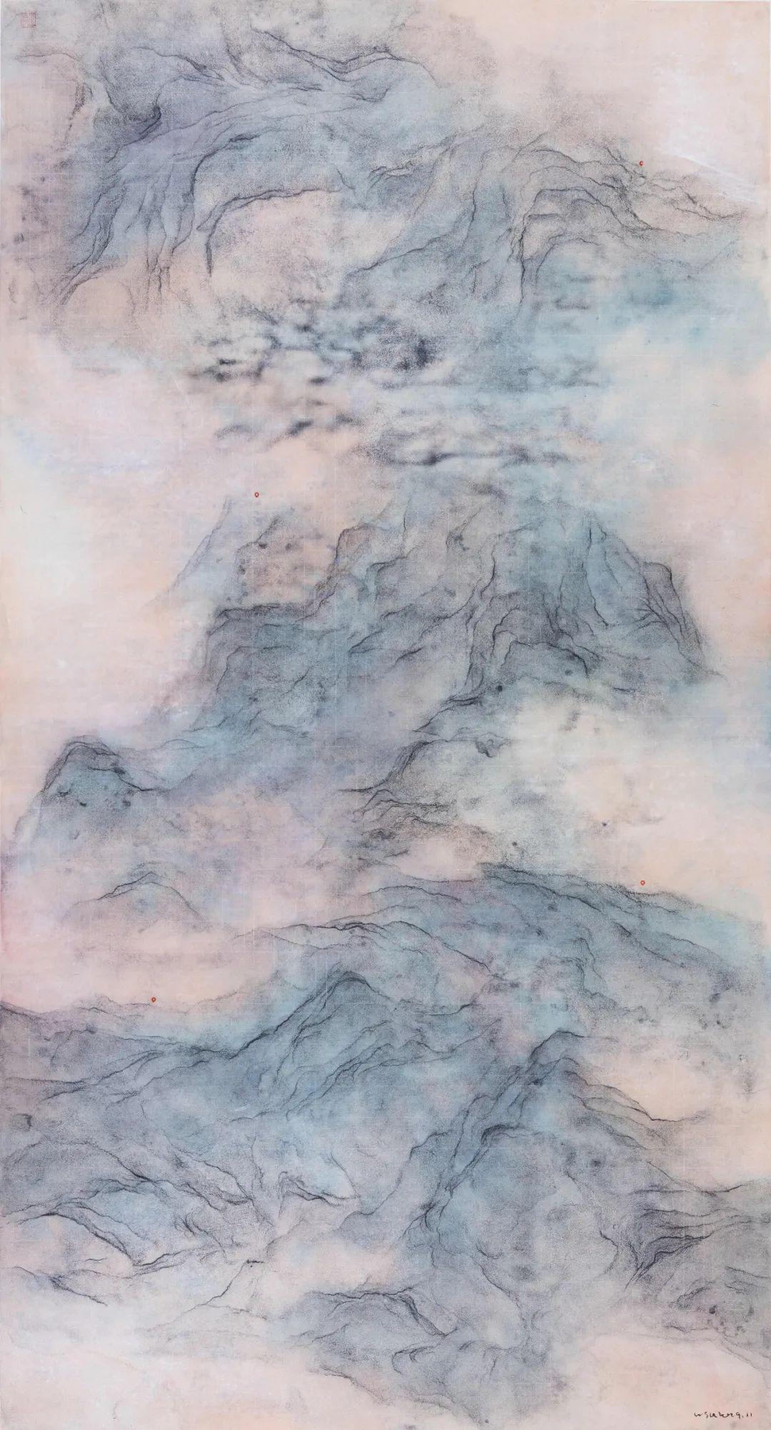 王绍强,叠纪之一,紙本水墨,178cm×96cm,2019