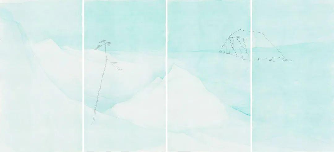 沈勤,隔江望山3,纸本水墨,142.3×73.5cm×4,2019