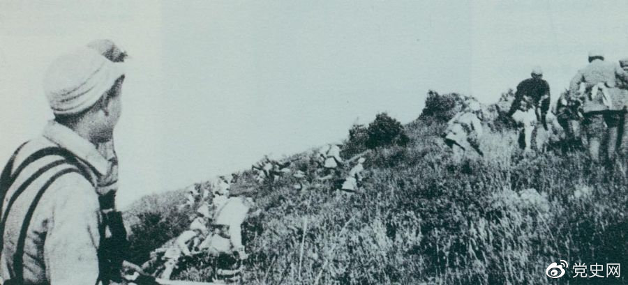 重庆谈判期间,为了反击国民党军队的进攻,刘伯承、邓小平于1945年9月发起上党战役。图为晋冀鲁豫军区部队正向老爷岭冲锋。