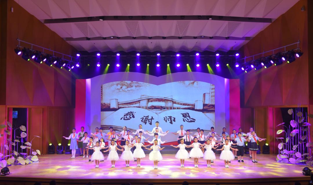 朗诵会上,孩子们用纯净、空灵的童声合唱《老师》,表达在他们心中,老师给予他们的温暖和力量;诗文联诵《老师的眼睛》《读你,是一生的幸福》《九月的献辞》是对老师最动人的解读和最诚挚的祝福。师生合诵《好大一棵树》《老师,一生都站着》展现了老师与学生之间深刻的情感连接,令人动容。群诵环节《老师的誓言》则表达了教师工作者坚定不移地实现教育理想与抱负的决心。