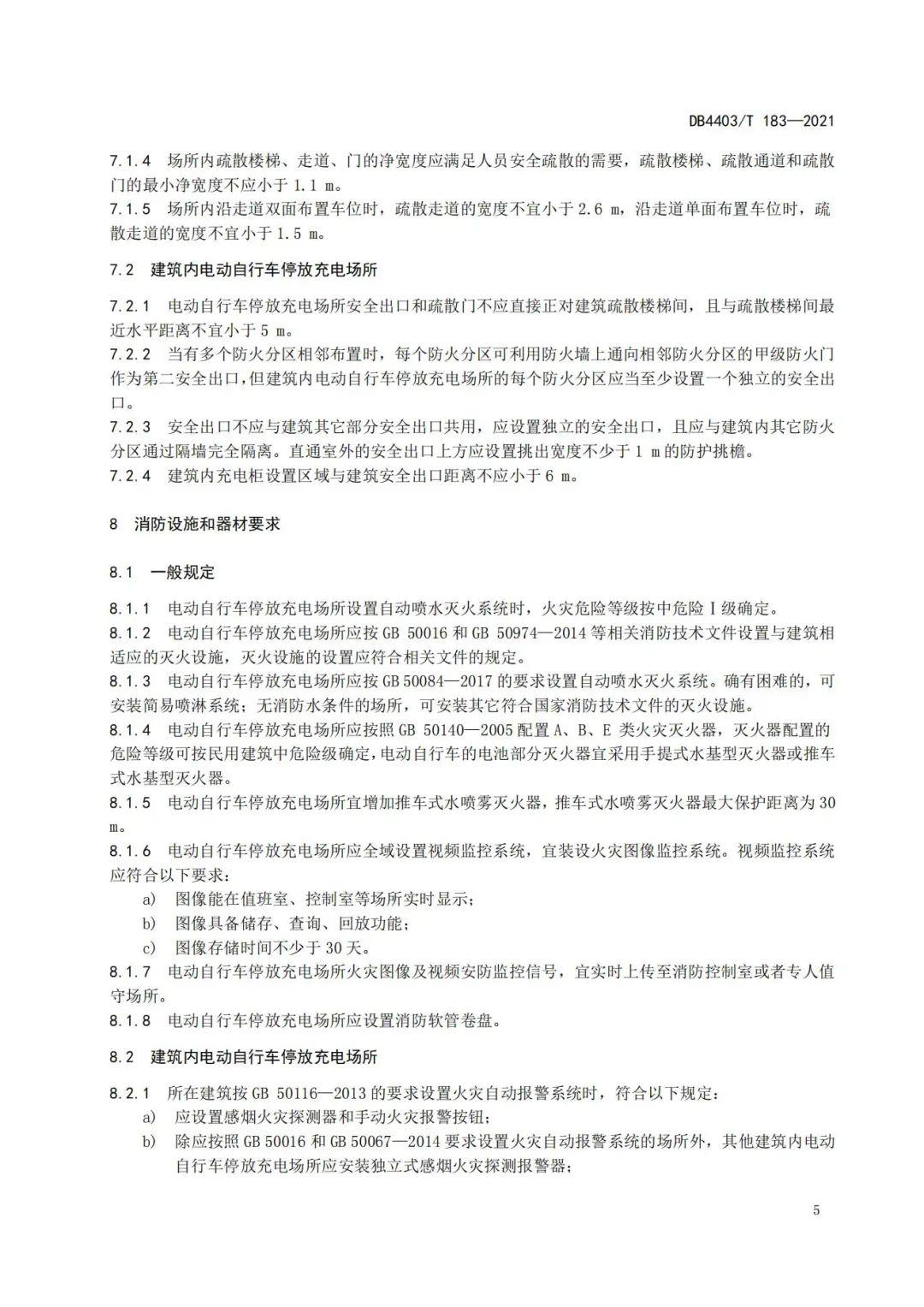 同时,对于已经建成使用的电动自行车停放充电场所,也应按照《规范》落实好各项火灾防范措施,切实从源头上解决电动自行车违规停放、充电难题,有效遏制电动自行车(电池)违规入楼入户现象的发生。