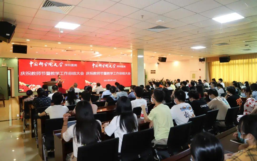 潘焕生副主任宣读了湘南学院教师节慰问信,湘南学院党委向中国科学院大学深圳医院全体教职工致以节日慰问,并向我院多年来对湘南学院人才培养、科学研究等各方面的支持、付出与贡献,表示衷心的感谢!祝愿学校与医院的合作天长地久,成果越来越多。