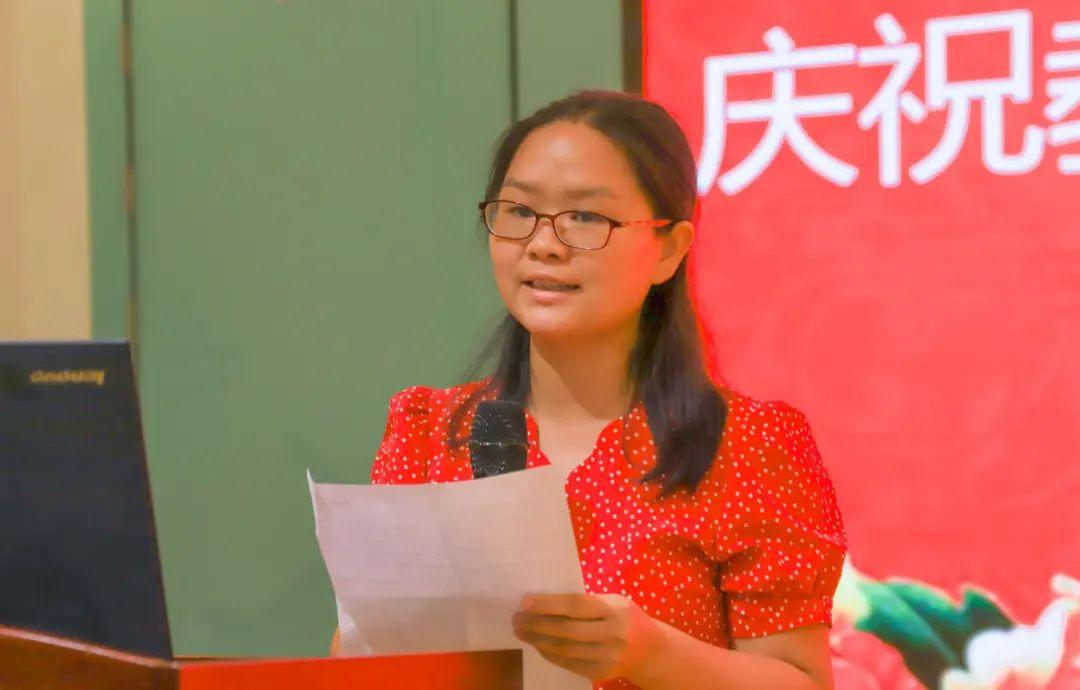 获奖教师代表刘嘉玲老师上台发言,她和广大教师们分享了在教书育人和学习中的的点滴体会,并表示在今后的工作和学习实践中继续努力,不断提高教学水平。