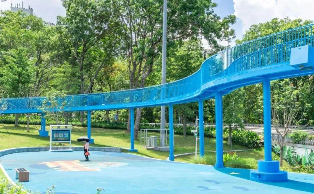 蓝桥下还有互动游戏屏和太阳能充电椅
