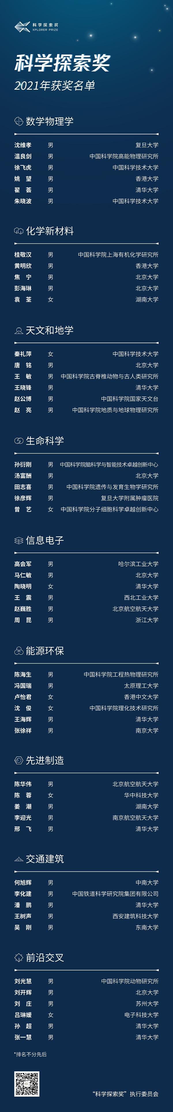 据了解,“科学探索奖”于2018年设立,当时正值腾讯成立20周年之际,公司董事会主席兼首席执行官马化腾与杨振宁、饶毅等14位科学家联合发起“科学探索奖”这一公益奖项,这也是目前国内金额最高的青年科技人才资助计划之一。奖项秉承“面向未来、奖励潜力、鼓励探索”的宗旨,面向基础科学和前沿技术领域,奖励在中国内地及港澳地区全职工作的、45周岁及以下的青年科技工作者,每年遴选不超过50位获奖人。