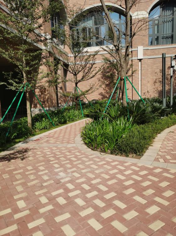 项目采用了大量的透水砖铺装,面积达到了9500平方米。