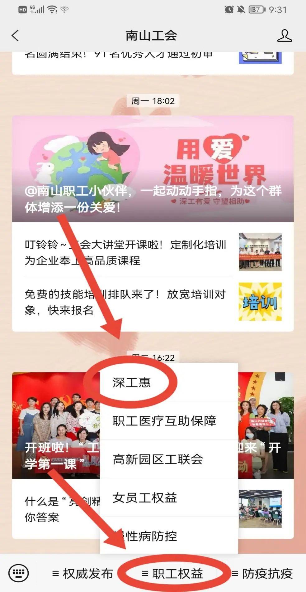 关注“南山工会”公众号,点击“职工权益—深工惠”,进入深工惠页面,点击“惠活动”—“推荐”,打开链接,点击报名即可参与抽奖。