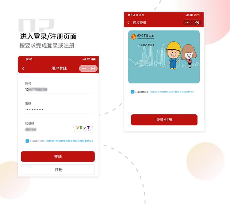 (二)点击“职工权益—深工惠”,点击“登录/注册”;
