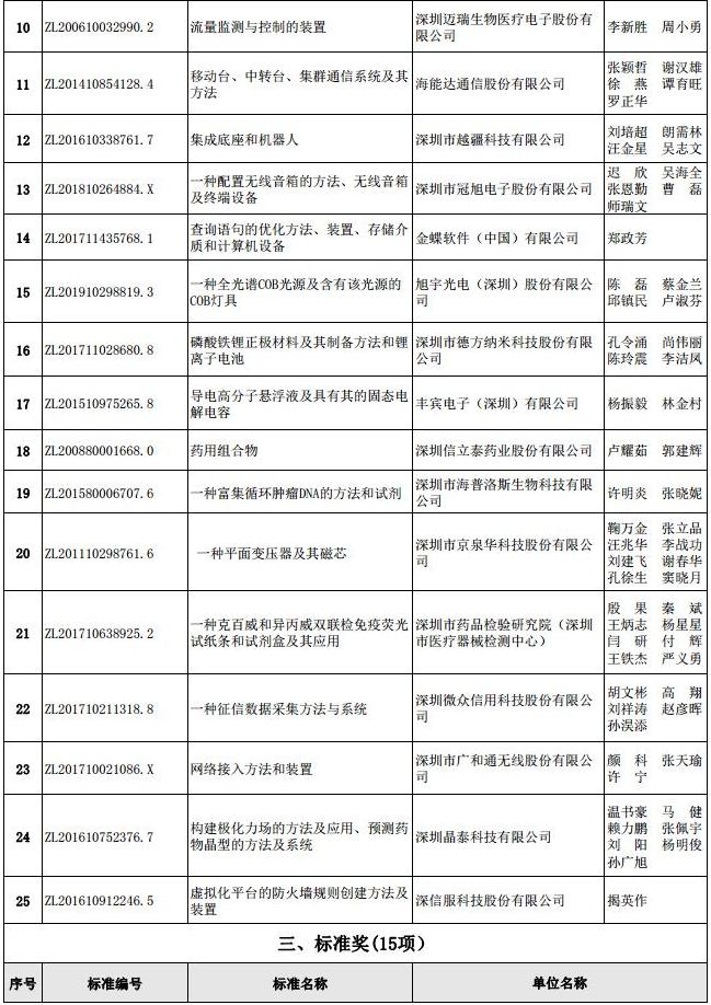 在拟奖励的25项专利奖中,包括华为技术有限公司的“一种节点互连装置和服务器系统”项目、深圳远征技术有限公司的“一种物理隔离型防雷系统及物理隔离型防雷方法”等。