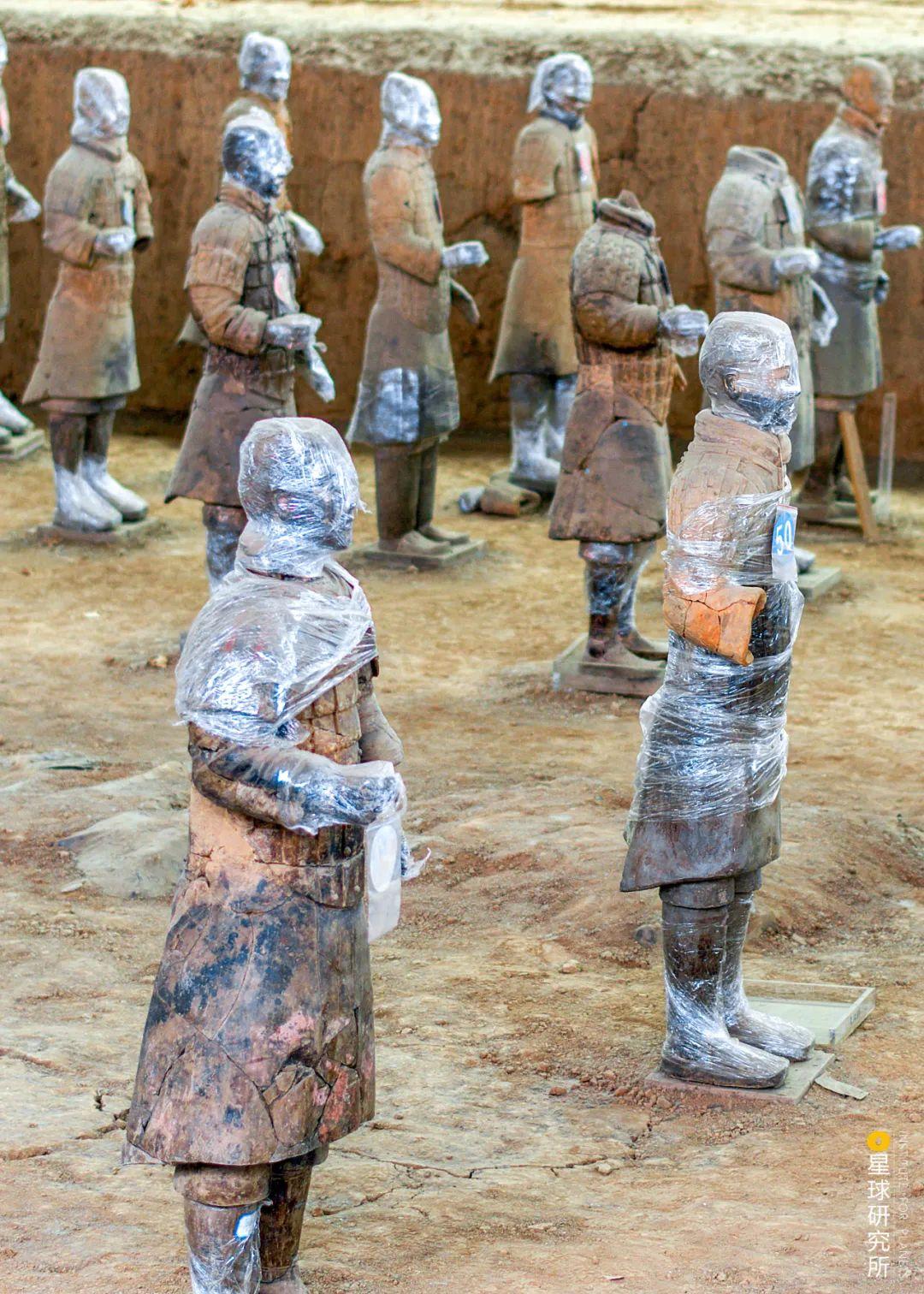 (兵马俑刚出土时的场景,摄影师@赵斌)