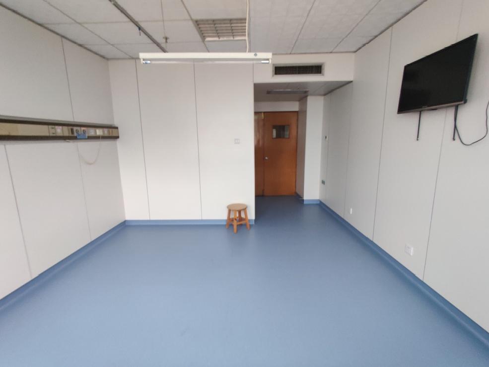 墙面:树脂护墙板;地面:PVC胶地板