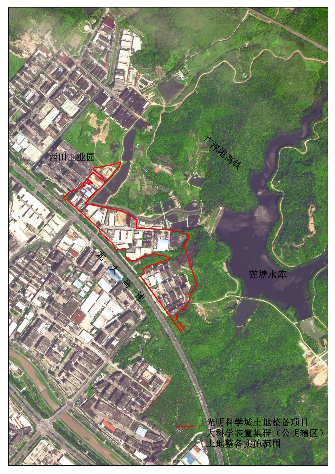 光明科学城土地整备项目-大科学装置集群(公明辖区)土地整备实施范围。