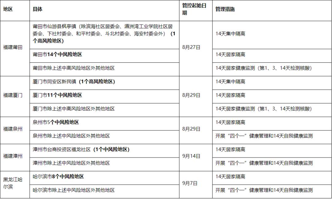 昨日,广东省疾病预防控制中心官网发布对重点地区来(返)粤人员健康管理措施,要求福建莆田、厦门、泉州、漳州和黑龙江哈尔滨等地中高风险区来(返)粤人员需进行隔离14天。