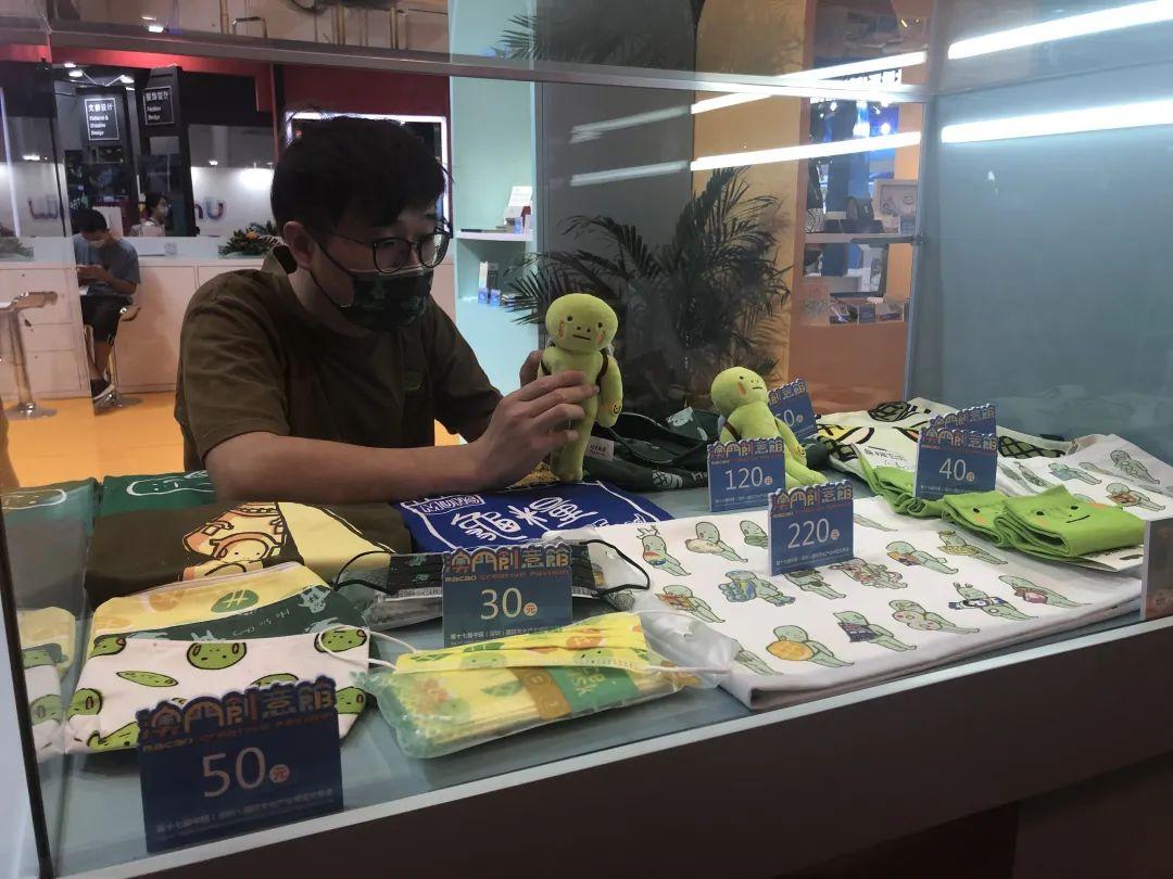 澳门青年岑健恒带着自己设计的动画IP周边产品来参展,两天卖出了10多件产品。澎湃新闻记者 陈绪厚 摄