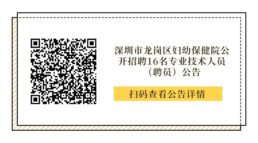 深圳市龙岗区妇幼保健院公开招聘16名专业技术人员(聘员)