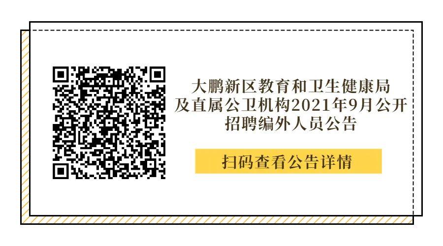 大鹏新区教育和卫生健康局及直属公卫机构公开招聘编外人员5人