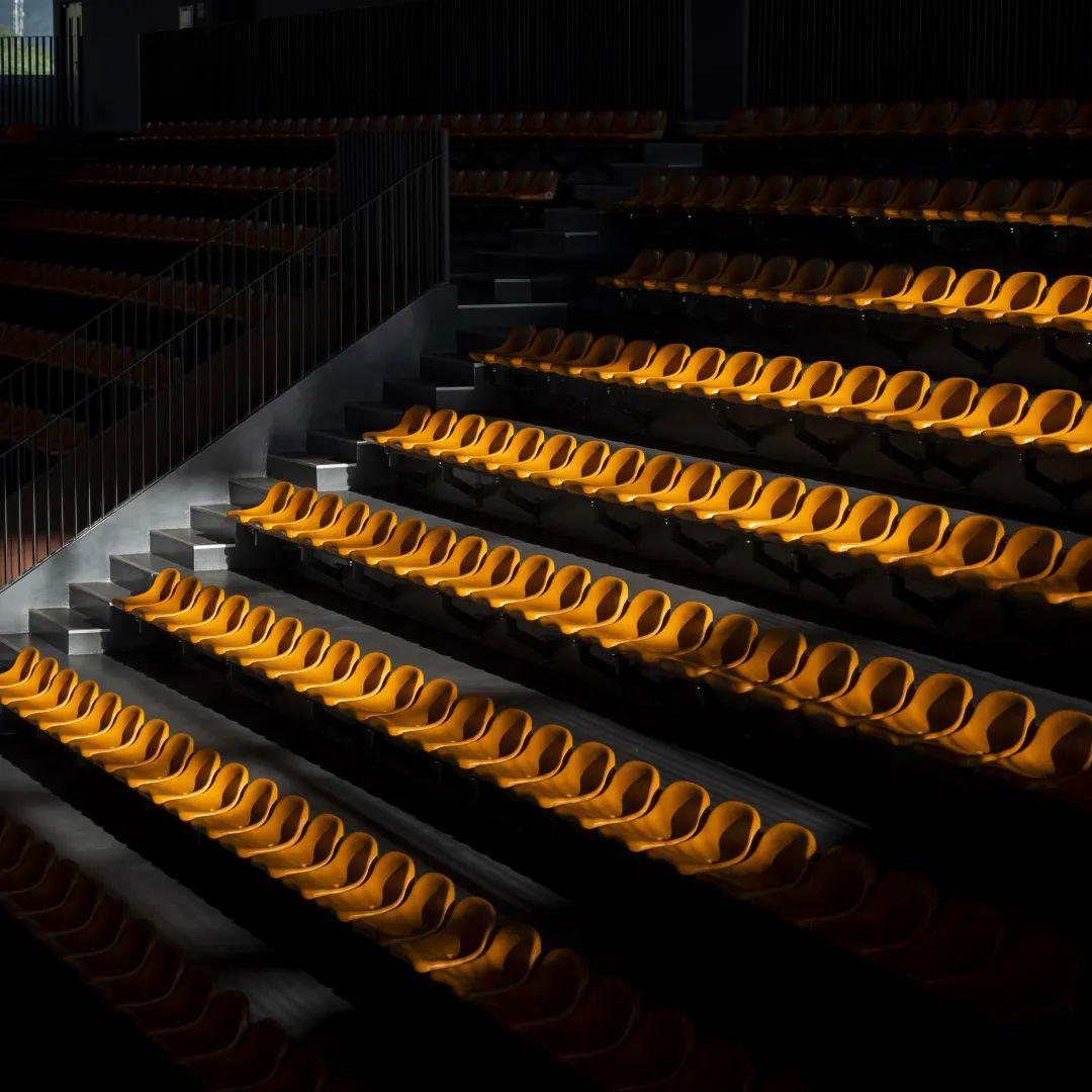 建筑平面以观众厅与之外部灰空间之间的巧妙处理,形成了一个虚实对比强烈、光影变化丰富的立面效果。