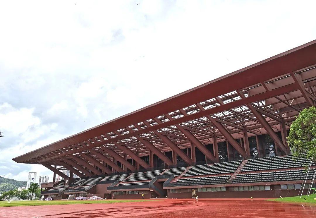 体育场观众席的主要出入口设置在体育馆外围、高7.2米的平台上,西侧和北侧的人流可以通过校园连廊或者平台到达羽毛球馆、综合性体育馆或者体育场的看台区。
