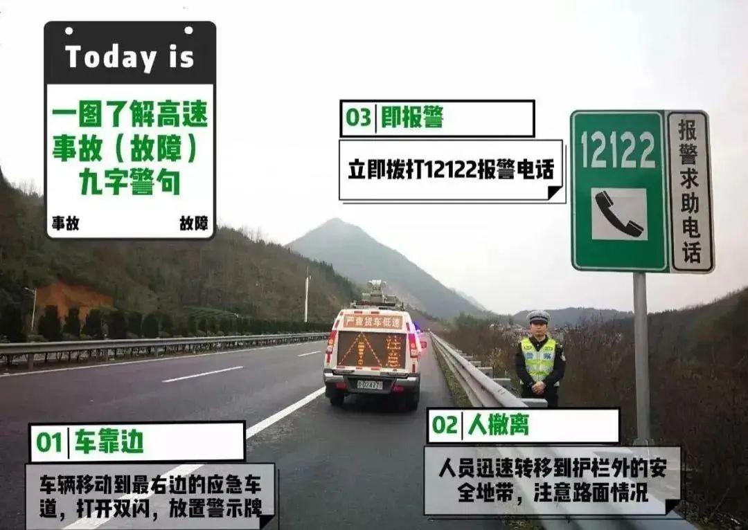 当车辆无法继续移动时,应立即打开车辆危险警示灯,并在车后方150米以外的地方放置警示标志。车内的警示标志应放置在显眼、容易拿到的位置,发生事故时尽快放置后,车上人员迅速离开车辆,移转到安全地方,立即报警。