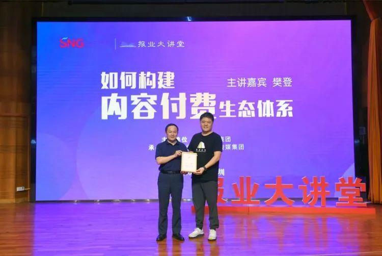 9月27日,第一期“报业大讲堂”正式开讲,该活动由深圳报业集团主办,深圳报业教育传媒集团承办。首期主讲嘉宾是“樊登读书”创始人樊登,他以《如何构建内容付费生态系统》为主题,分享了“樊登读书”的成长历程和系统构建。同时,作为一名创业者、一位父亲,他也分享了自己在家庭教育和阅读方面的经验和心得。