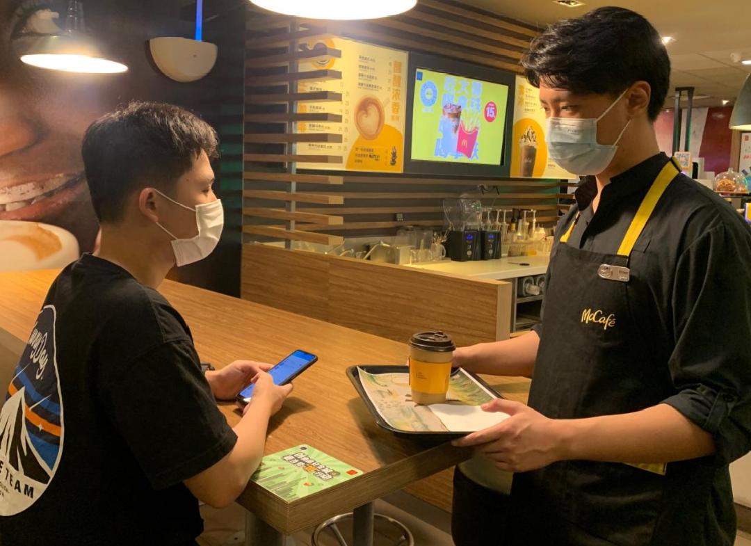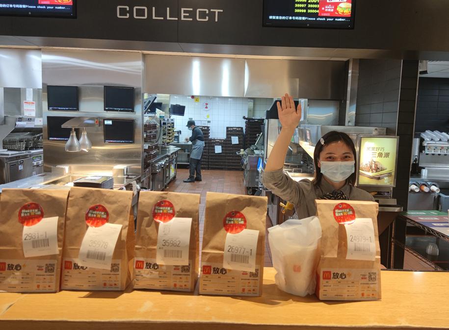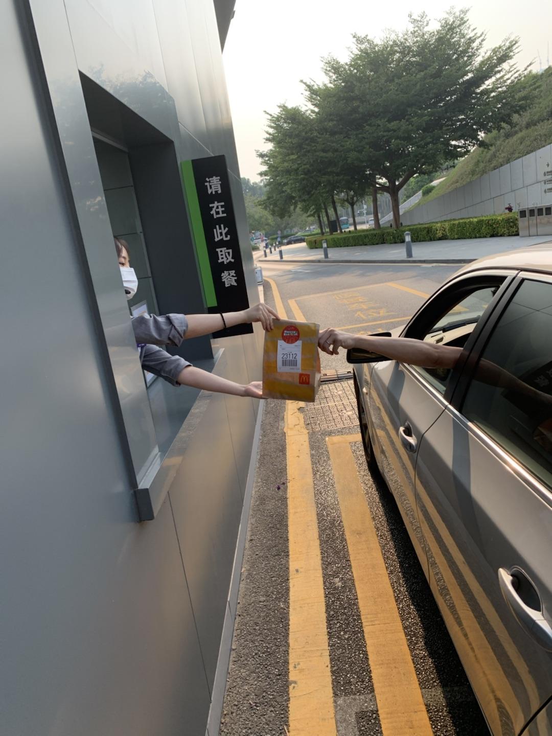 △得来速车道点餐的外带包装张贴有创城贴纸