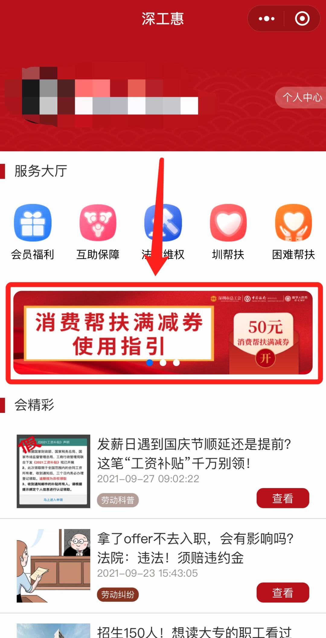 中秋活动中抽中“满50减50”元消费帮扶满减券的小伙伴,由深圳市总工会联合中国银行推出的2万份消费帮扶满减券,已经全部以数字人民币红包的形式发放至个人的中国银行数币钱包中。“消费帮扶满减券”有效期至2021年10月7日,请在有效期内尽快使用。