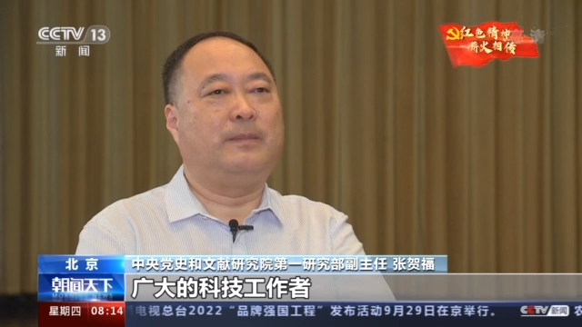 中央党史和文献研究院第一研究部副主任 张贺福:科学家精神它是在中国共产党的领导下,广大的科技工作者为了实现中华民族伟大复兴,形成的一种独特的精神品质,是中华民族自强不息、奋发进取精神的集中体现,也是我们党的精神谱系的一个重要组成部分。