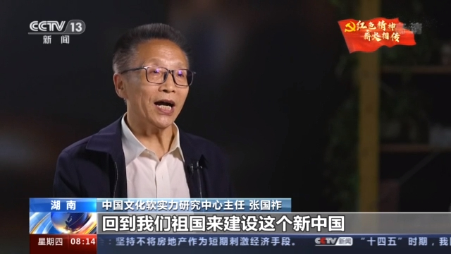 中国文化软实力研究中心主任 张国祚:新中国成立前后,一共有2000多位海外的优秀学者回到我们祖国来,建设这个新中国。这当中最典型是谁,是钱学森。他说我回国没有别的理由,就是要使我们积贫积弱的祖国最后能够走向富强,人民不再受欺负,那么这背后的精神力量是什么,就是对党,对祖国的忠诚。所以他才能有胸怀祖国、服务人民那样子的爱国精神。