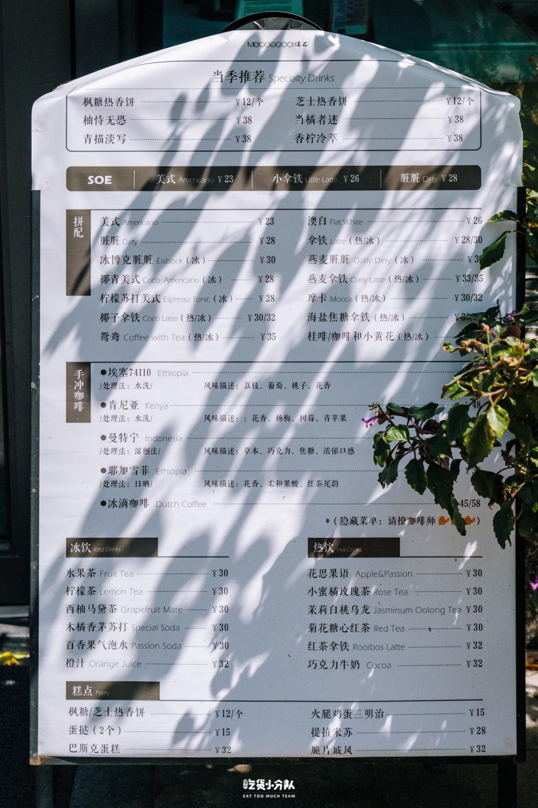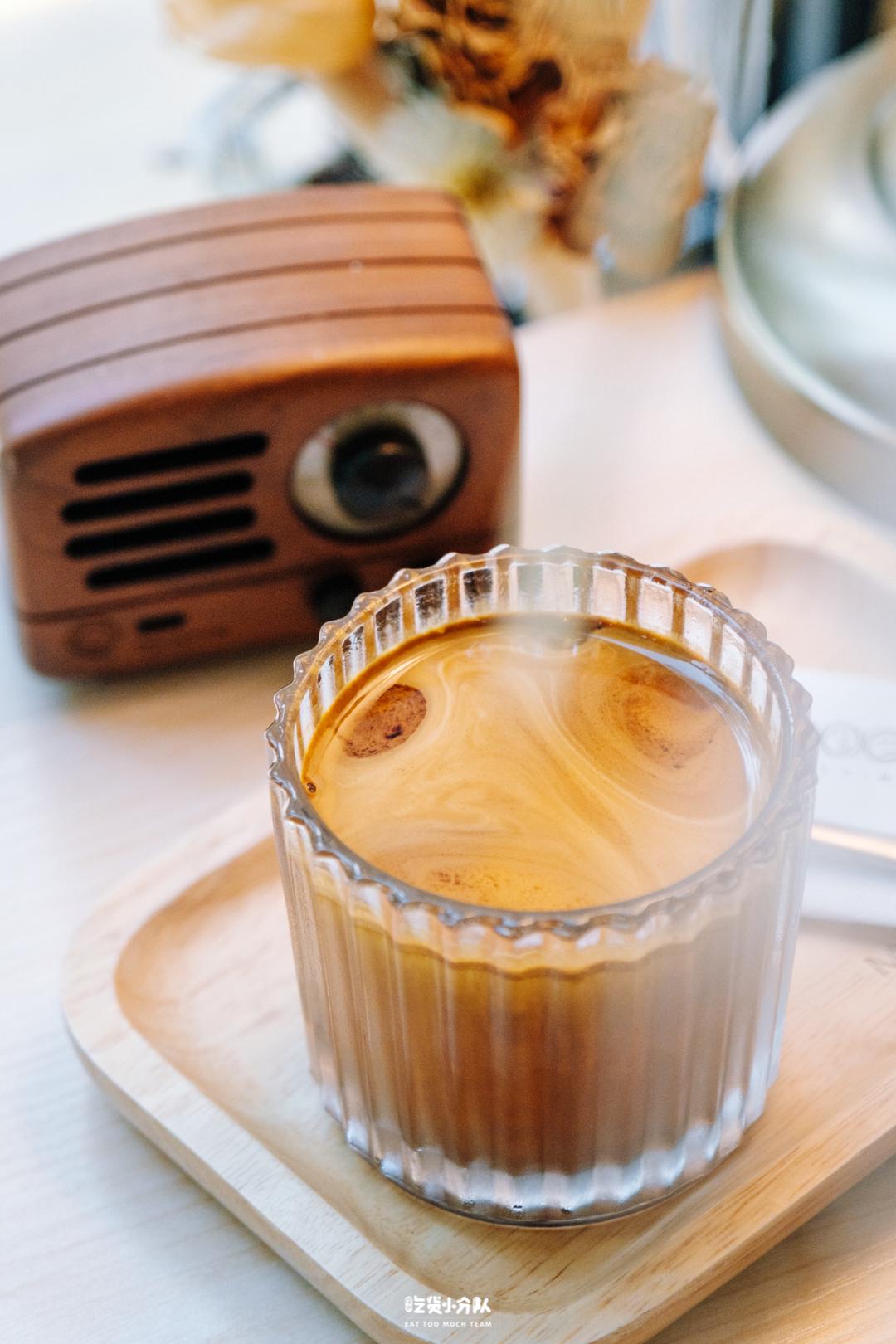 这杯以店名命名的美式,口感非常平衡,当日冲的豆子是[耶加雪菲],透亮的色泽,喝起来有点像茶,咖啡豆的品种会不定时更换。每杯咖啡出品都会配上老板淘回来的芝麻饼。因为还在打磨产品细节,目前提供的饮品的品种较少,到了晚上会提供简单的酒水。