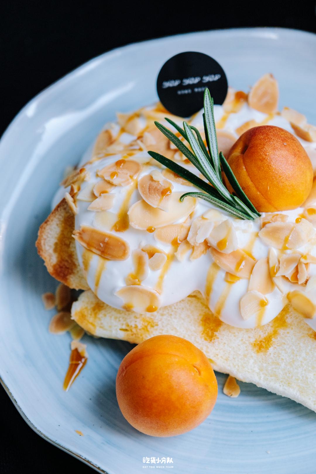 她们的招牌“蜂窝拿铁”,也很甜,牛奶打底,放上一层自制的蜂窝糖,浇盖浓缩咖啡,用蜂窝糖来替代糖浆化解苦涩,喝起来不腻。另外一款招牌是她们的自制蛋糕“咸奶油戚风”,蛋糕底气孔均匀且松软,咸味的奶油不会有腻的感觉,顶部撒上扁桃仁碎片,老板娘说上面的水果是根据季节换的,前阵子是无花果,现在换成了杏子,嗯~也很甜。