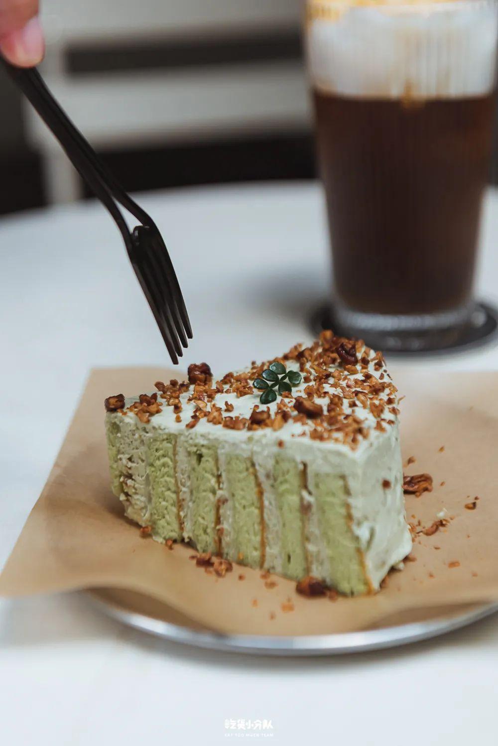 除了提供经典款的咖啡,老板推荐了菠萝冰特调和牛油果山葵味的蛋糕,菠萝和香茅冰打底,顶部浇上浓缩咖啡,清新的感觉呼之欲出,喝起来提神醒脑;另外这个听起来很黑暗的蛋糕吃起来却有被惊喜到。