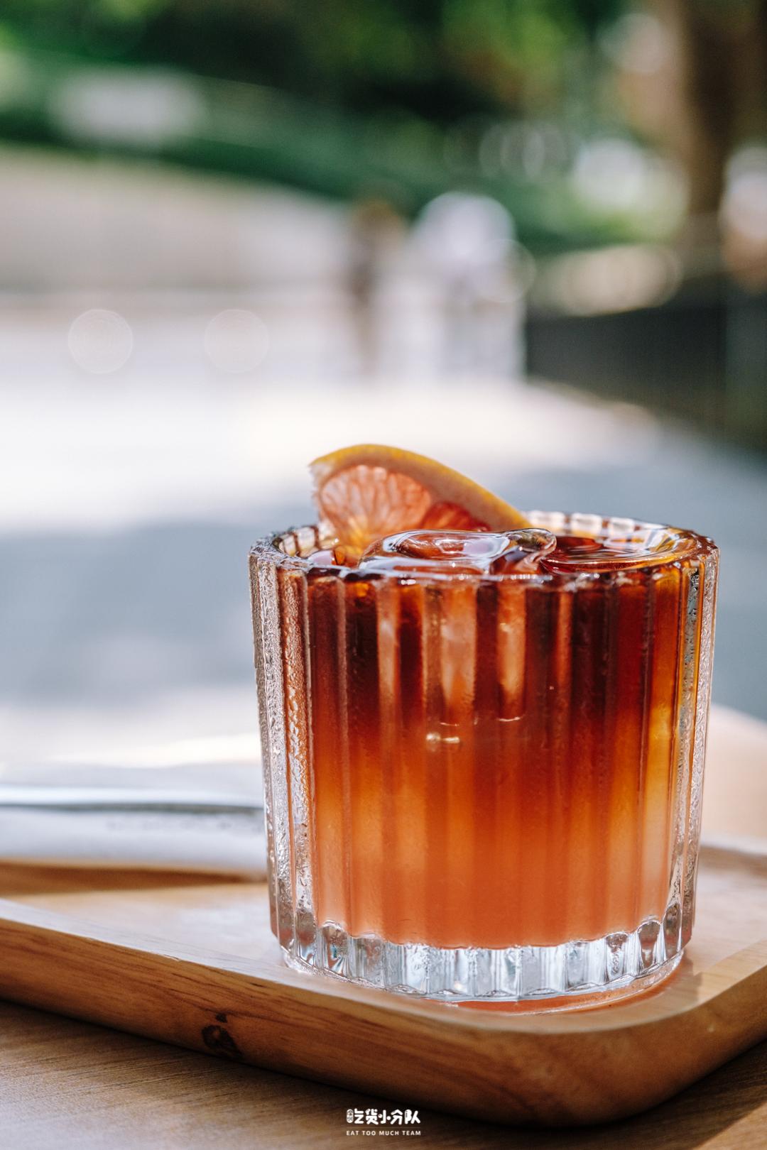 咖啡师推荐的西柚冷萃,酸涩中带着微苦,在西柚汁的晕染下,恰似装进杯里的夕阳。