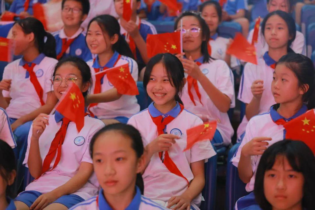 挥舞着手中的五星红旗