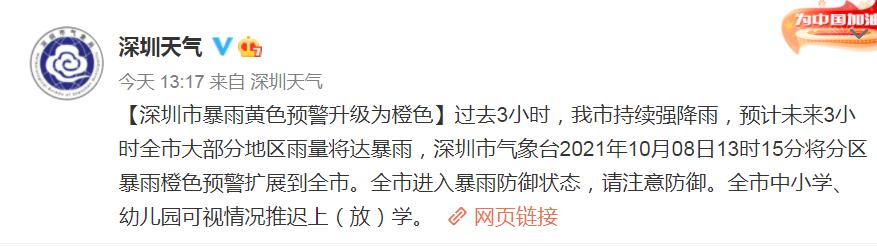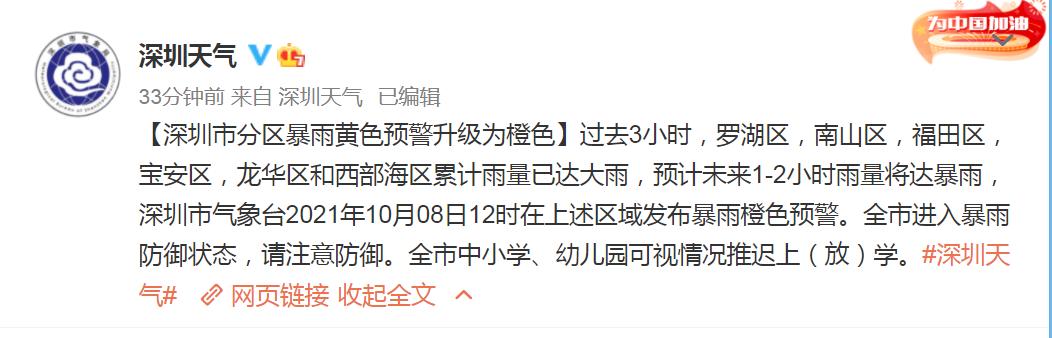 分区暴雨橙色预警扩展到全市