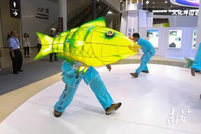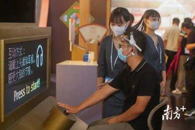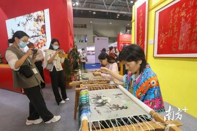 在广东馆文化创意展区,观众可以欣赏醒狮、玉雕、榄雕、广绣、制陶等岭南非遗文化,也可以了解“粤菜师傅”“广东技工”“南粤家政”等不断扩大的岭南文化IP群,感受岭南传统文化与新潮文化碰撞产生的迷人魅力。