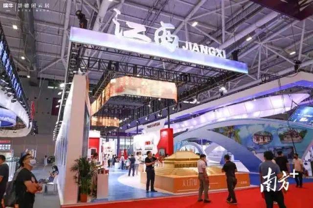 江西馆围绕建党100周年和江西特色文化资源,突出“红色”主题,重点展示江西特色文化产品和“天工开物坊”文创精品,展示“红、绿、古、金”四色赣鄱文化魅力。