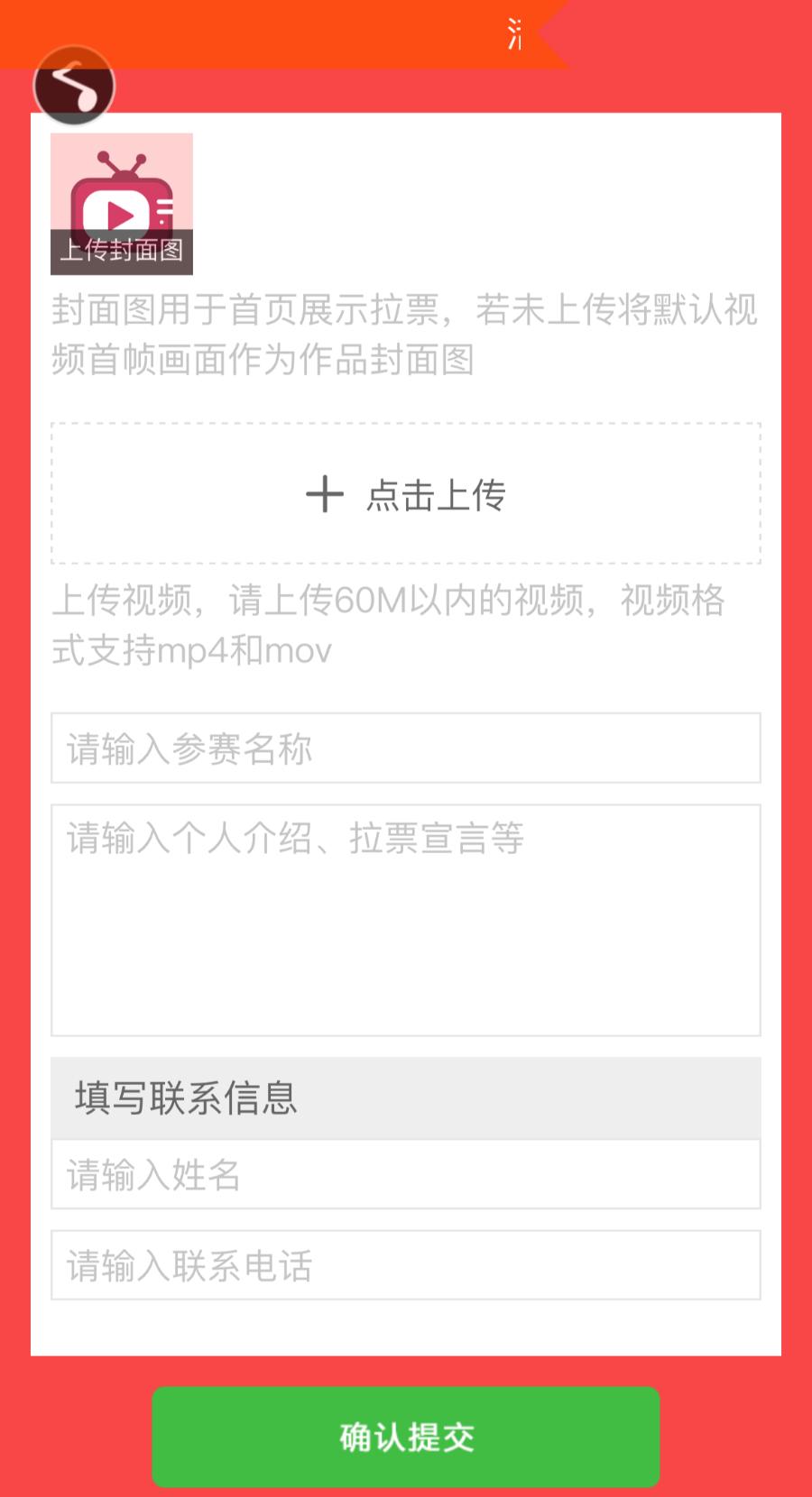2. 随后上传封面图、拉票视频(视频推荐20M以内,视频格式支持mp4和mov)。