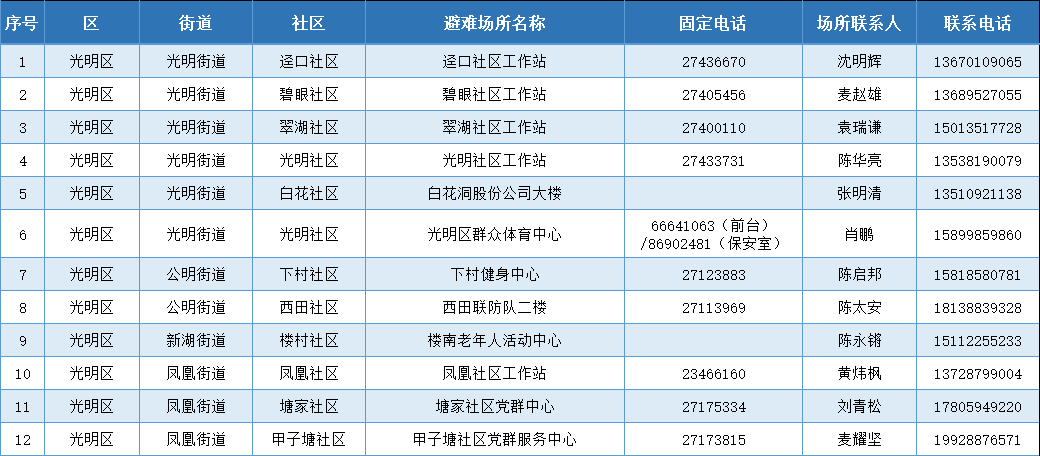 光明区已开通室内避难场所,有需要的市民可通过以下信息查找:
