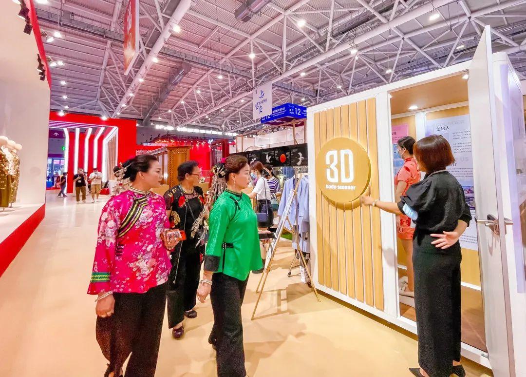 盈天下视觉科技有限公司自主研发的空气显示技术,不仅在一定范围内可以调整影像的成像位置,同时具有手势互动、动态成像、动作捕捉、跨屏互动、多角度三维视等功能。将全息数字成像与工艺美术完美结合,让一件件工艺美术作品通过现代科技悬浮于眼前,观众可更近距离观看与触碰大师精品。赢家集团3D人体测量仪数秒云构建人体,搭建3D人体模型,带来新的智慧穿搭体验。山村音乐智能机、VR游戏互动体验等,为参展观众“智造”一次丰富的文化科技之旅。