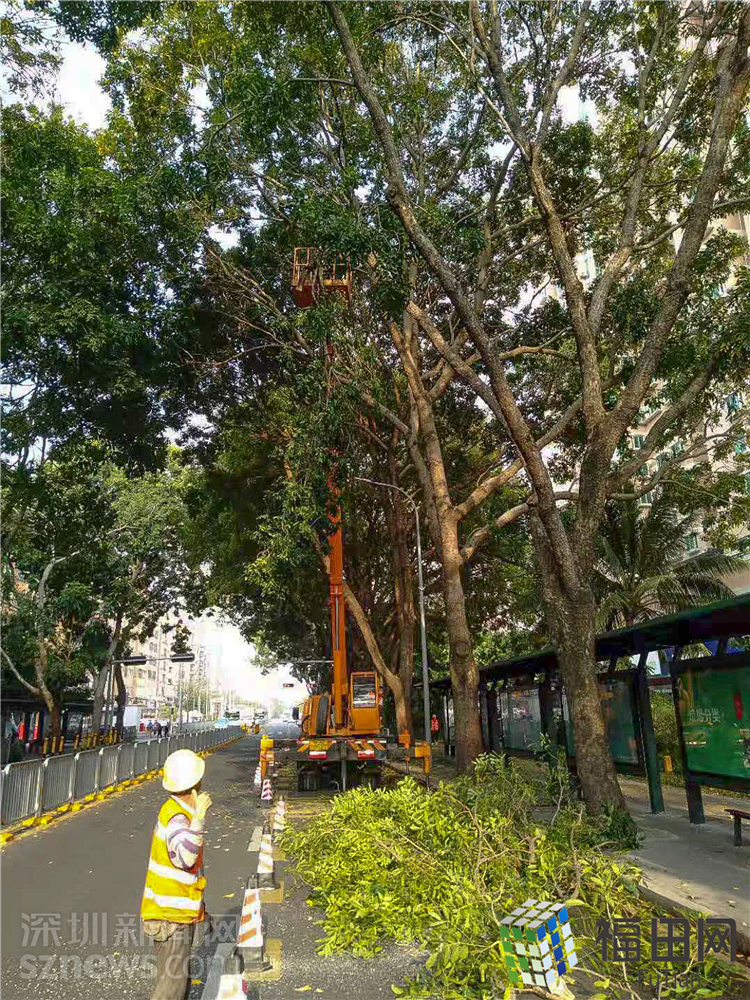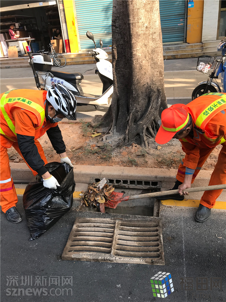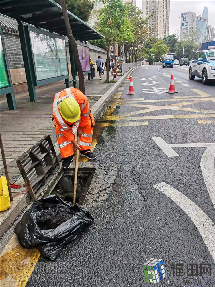 福田区全面开展隐患排查,对道路、低洼地区、绿化带、公园绿地等区域树枝落叶、临时垃圾进行清扫,对超高大乔木顶端冠幅进行修剪,对排水边沟、雨水箅子、雨水管网等及早疏通。
