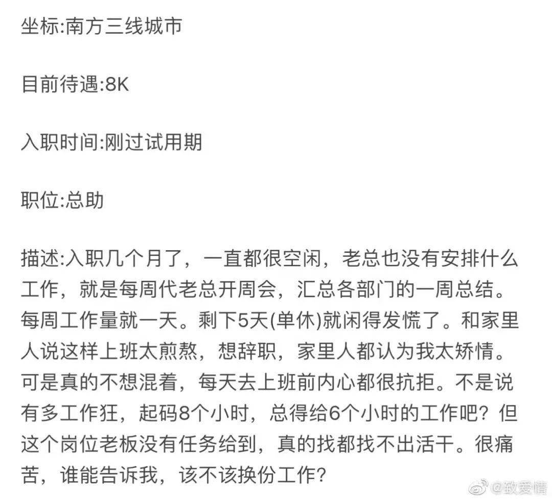 这位刚过试用期的小伙伴,在单休(每周上6天班)的公司中,感觉自己每天的工作几乎都很闲、很闲、很闲闲闲闲闲!!
