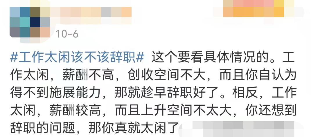 工作太闲并不是辞职的理由,没有明确的目标才是最可怕的。所以,如果选择不辞职,那么一定要利用好时间,不断提升自身价值和竞争力,时刻为以后做好准备!