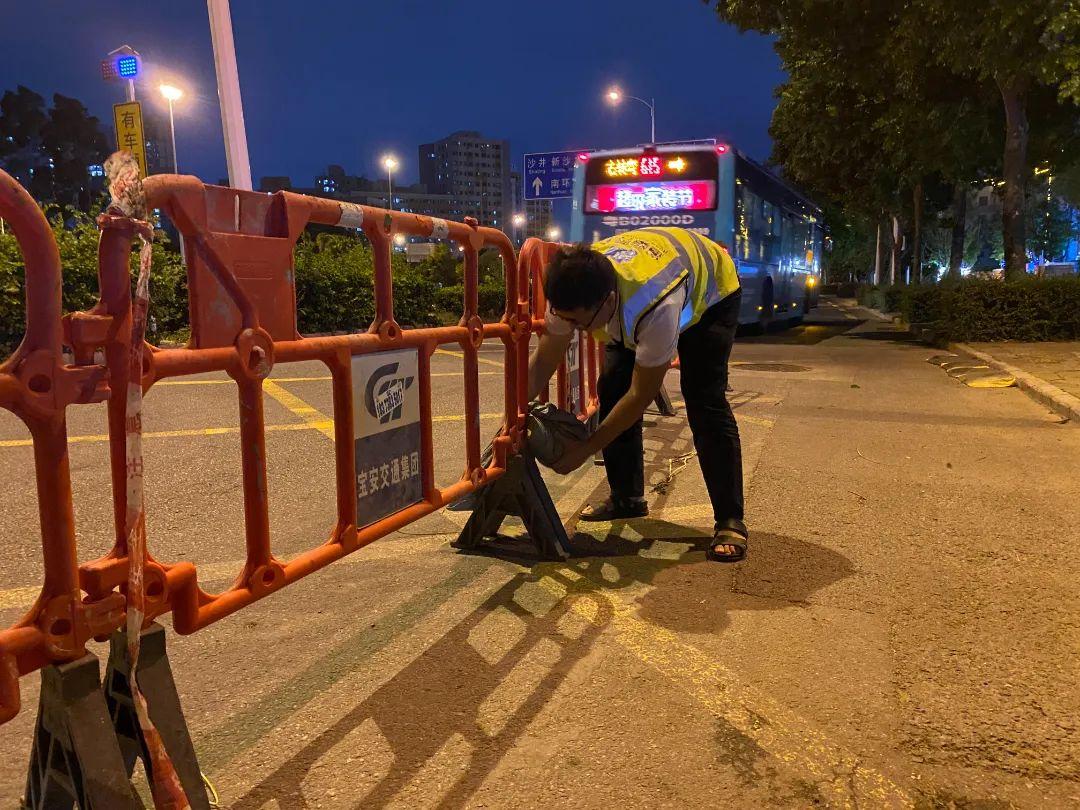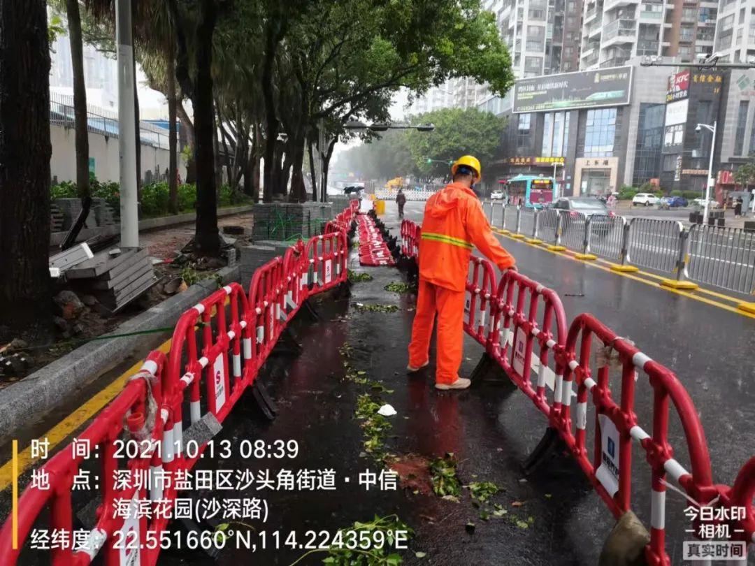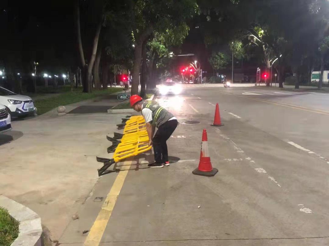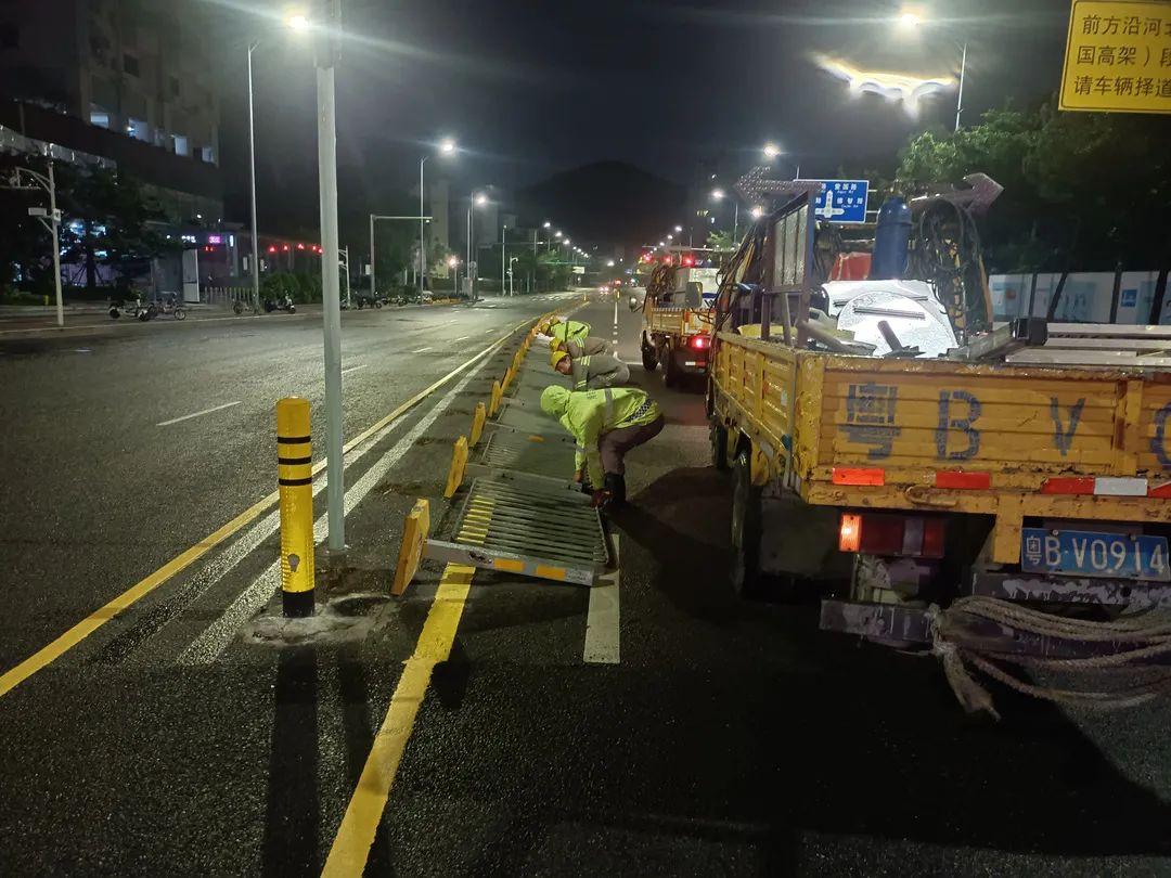 宝安管理局组织养护单位连夜紧急出动,扶正倒伏护栏,对小修围挡进行检查加固。
