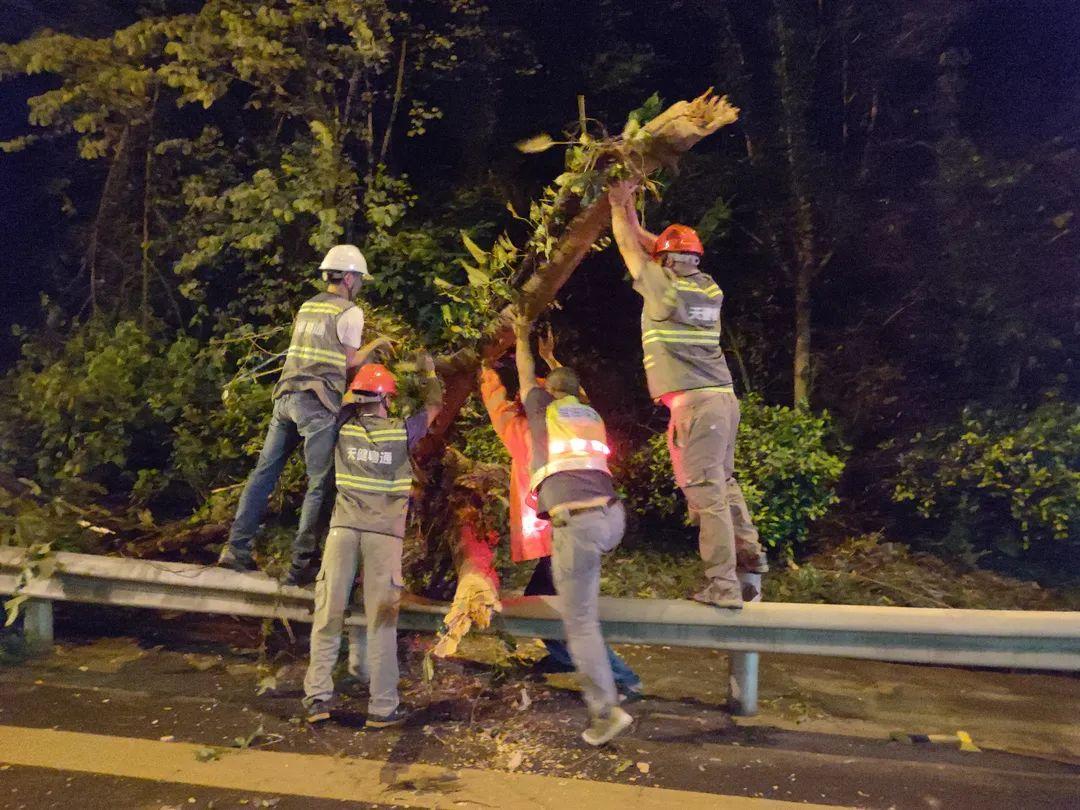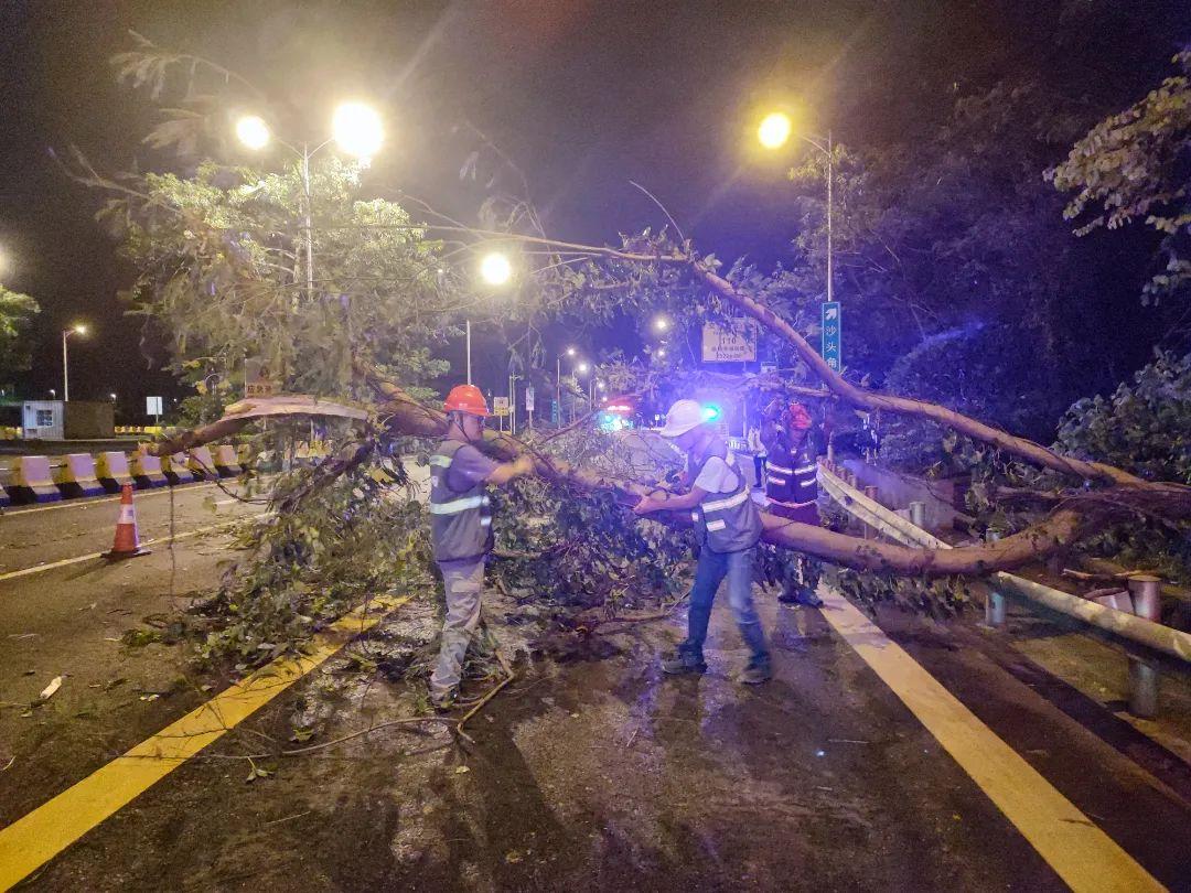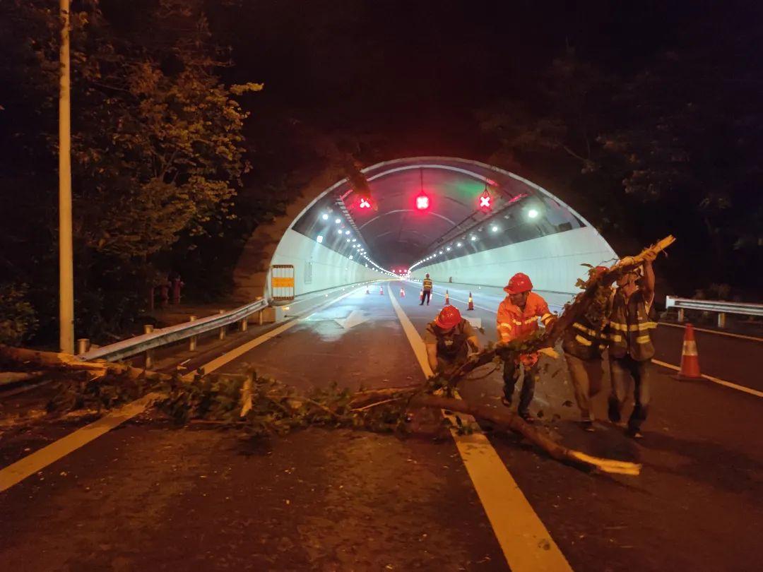 10月12日晚,盐田管理局加强对惠深沿海高速莲塘至盐田段隧道巡查,及时发现并清理田东隧道出入口倒伏树木共4处,确保了道路安全畅通。