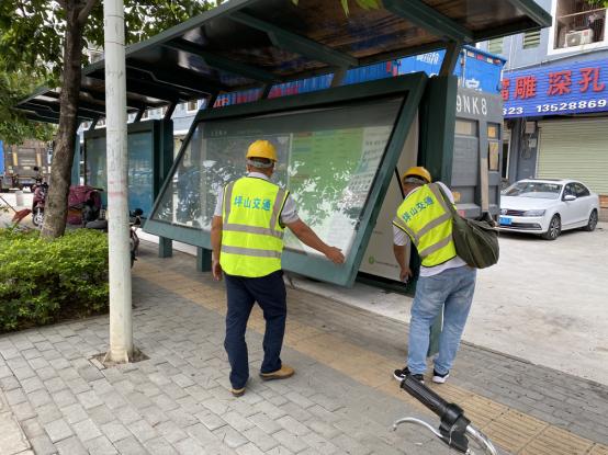 10月12日,坪山管理局对辖区内候车亭站亭、站架、玻璃等逐一开展安全检查工作,对需加固的站台进行加固措施、对已通电候车亭采取断电措施等,待台风结束后恢复。