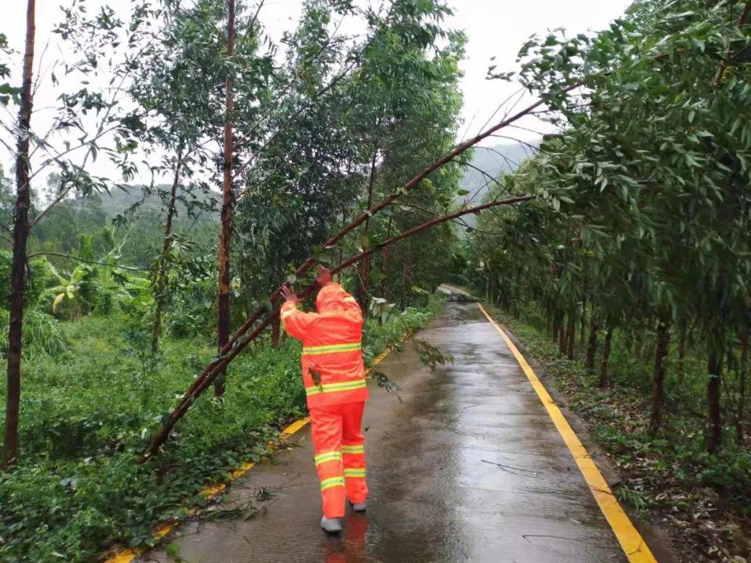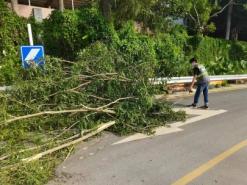 狂风肆虐,树木倒伏占据车道,车辆、行人无法顺利通行。快速清理路障,我们来!